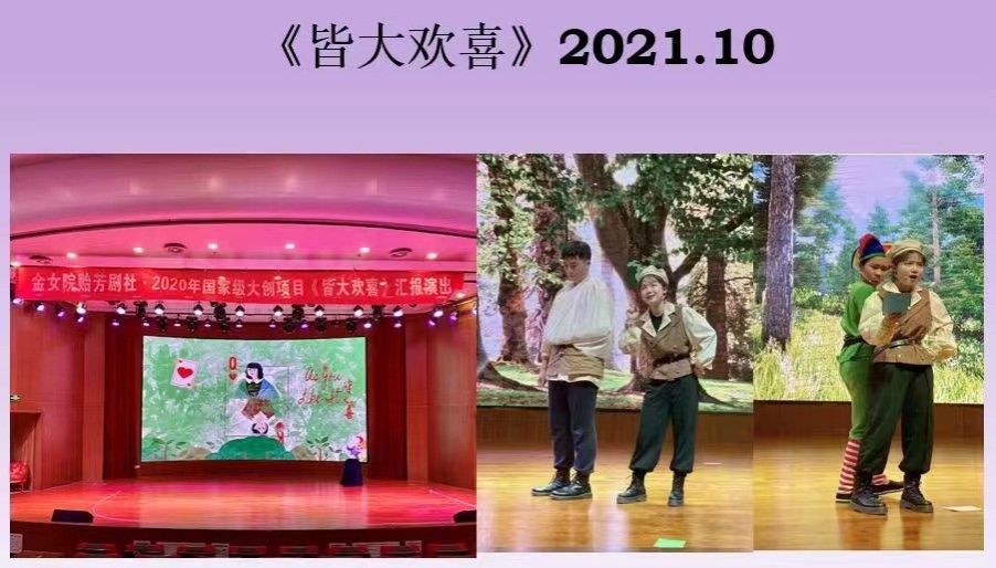 每一年的戏剧大创英语剧汇报演出,都非常成功,大大提高了学生们的英语表达能力和舞台表演能力。通过大创戏剧演出,促成了金女院“贻芳剧社”的成立,在百家乐平台