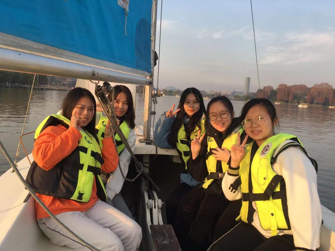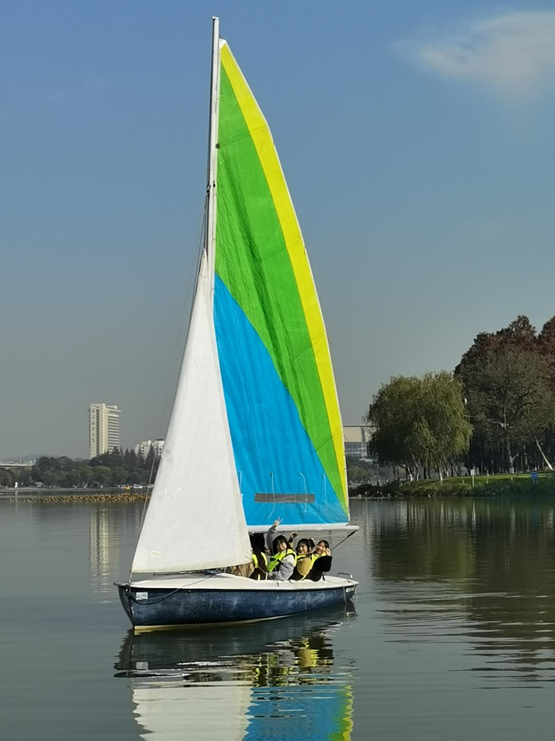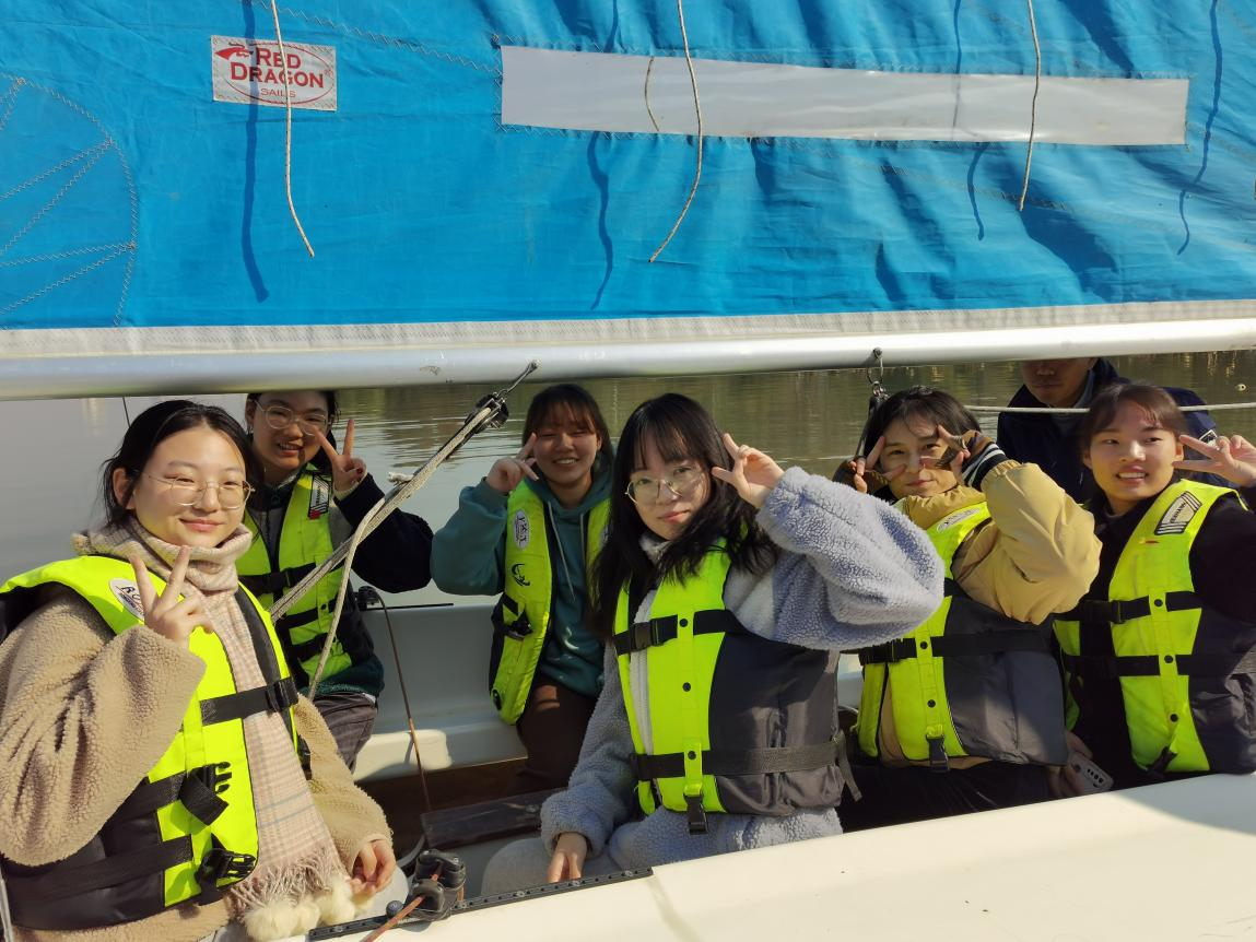 在掌握了基本的理论知识并进行了一系列陆上练习后,同学们以六七人的小组为单位登上帆船。行驶之初,同学们难以掌握帆船运动的技巧,在升前帆、主帆时显得手忙脚乱。但在教练的悉心指导下,学员们很快进入状态,配合得越来越默契,在冬日的暖阳下享受与大自然交融的美好时刻。
