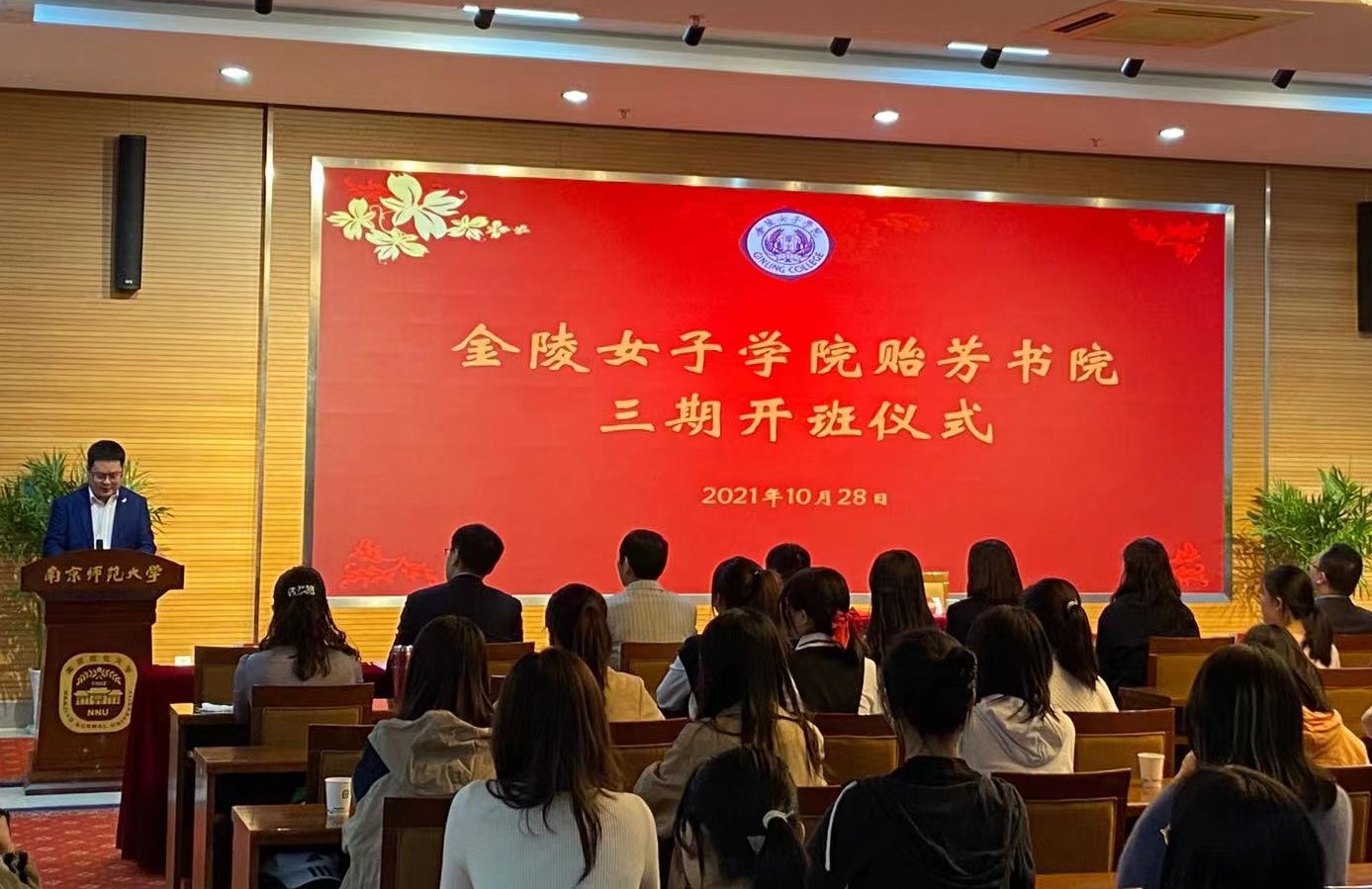 “贻芳书院”三期开班仪式于芳菲楼一楼会议厅成功举办。江苏省妇联干部百家乐平台院长施斌,省社区发展研究会会长、省委党校教授倪洪兰,朗阁教育集团副总裁李万涛,校教务处副处长徐永辉,校学生工作处(部)副处(部)长蔡炳锋,校团委副书记刘立为,金女院院长赵媛,院党委副书记高见以及贻芳书院教师代表,一期、二期学生代表和三期全体学员参加了活动。本次开班仪式由金女院党委书记薛传会主持。