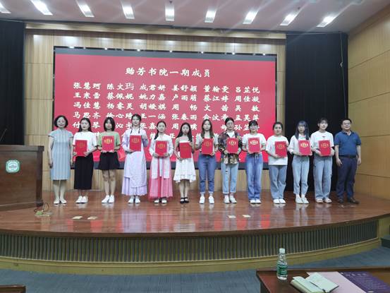 6月8日下午,金女院贻芳书院首期学员结业典礼在图书馆西报告厅顺利举行。金女院党委书记薛传会、院长赵媛、英语系副系主任马黎燕、院团委书记冯宁、贻芳书院首期班主任李凡程以及一、二期学员共同参加。本次结业典礼由金女院副院长杨素萍主持。