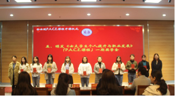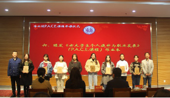 在全场热烈的掌声中,江苏省妇联干部百家乐平台院长施斌、学生工作处副处长孙茂华为“贻芳书院”一期优秀学员颁发《女大学生个人提升与职业发展》(P.A.C.E.)课程奖学金,鼓励同学们继续以积极向上的精神风貌迎接未来的生活与学习。接着,教务处副处长徐永辉、校团委副书记李鹏向贻芳书院二期学生代表发放了书院特色P.A.C.E.课程的作业本,期待她们接下来在学习中的优秀表现。
