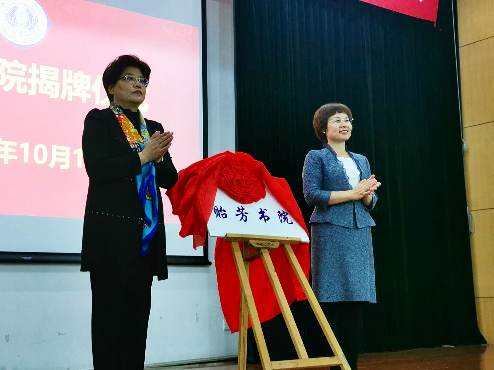 在全场热烈的掌声中,张勤副主席和孙友莲副校长共同为贻芳书院揭牌,开启了金女院卓越女性培养的新篇。