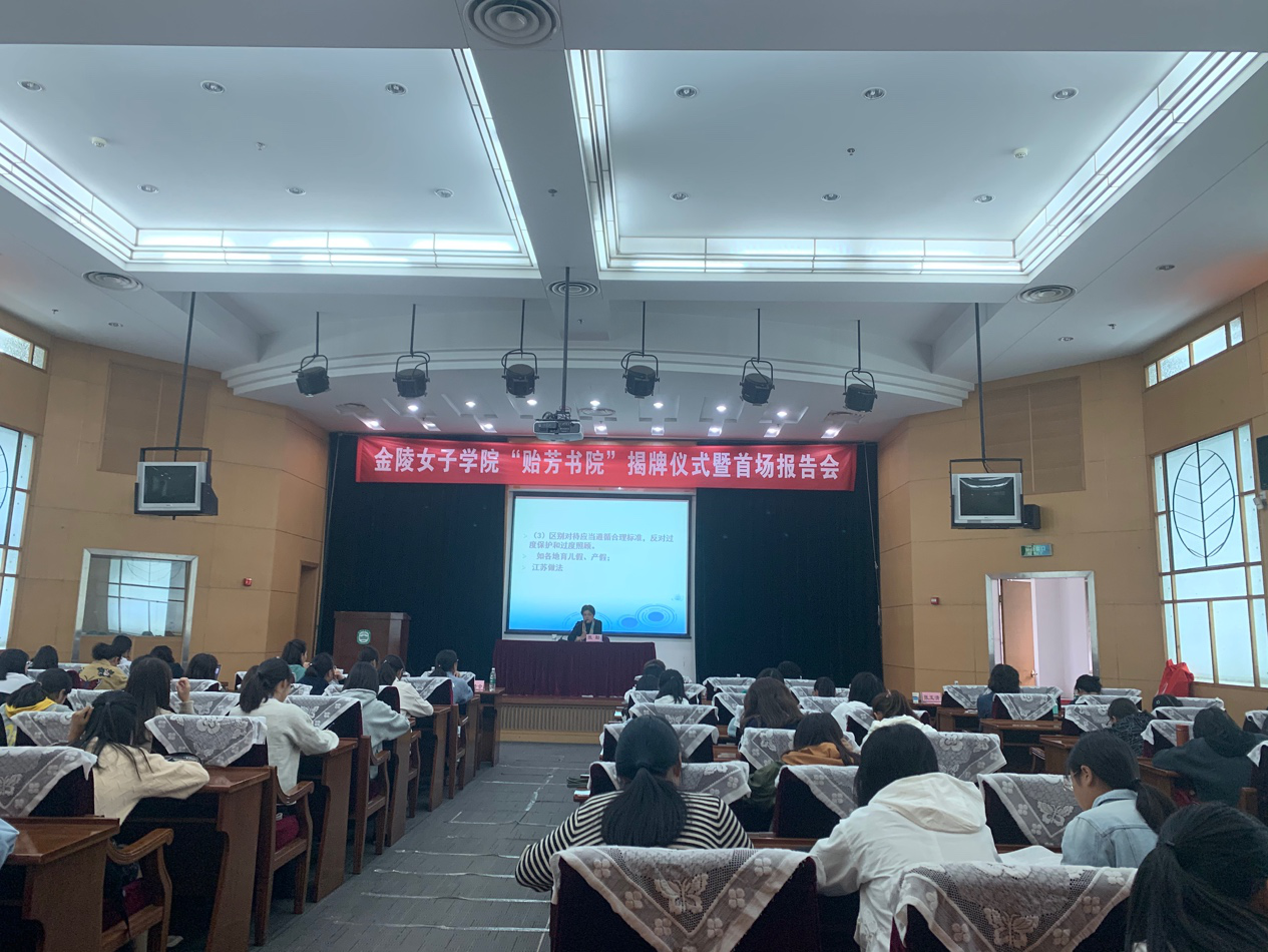 20191016日下午,百家乐平台 “贻芳书院”揭牌仪式暨首场报告会于敬文图书馆二楼西报告厅成功举办。江苏省妇女研究会会长、省政协常委、省妇联副主席张勤,校党委常委、副校长孙友莲,江苏省妇女干部百家乐平台副院长徐春芳,校学工处副处长孙茂华、团委副书记张玉清以及金女院师生代表和贻芳书院第一期的同学参加了活动。