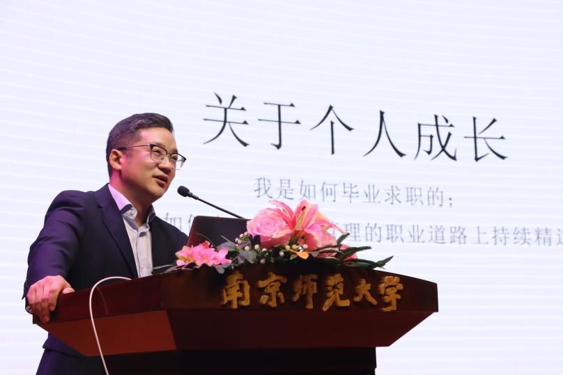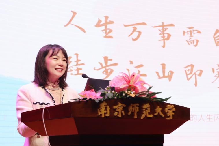 金女院2003届会计与财务管理系杰出校友、中国银行江苏省分行投资银行与资产管理部的副总经理王霞以“追风赶月莫停留,平芜尽处是春山”为主题,分享了她建议的青春成长历程。她动情地回忆了在南师的生活,有美好的青春记忆但更有坚定努力经历,毕业后便加入中国银行江苏省分行,从基层柜员扎实地走到今天。她指出,每个人的职业发展都会经历“适应期”“转型期”“突破期”,虽然经历伴随着阵痛,但只要学弟学妹们扎实筑基,自信争取,勤思好学,不惧淬炼,一定能胜任金融行业工作、得到发展。她还鼓励同学们人生不要设限,不管是否从事专业,只要勤奋专注、不惧困难、勇往直前,总能达到“人生万事需自为,跬步江山即寥廓”的境界。