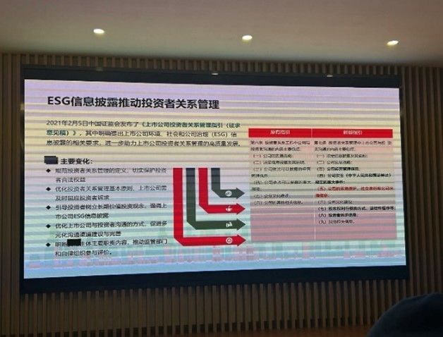 接着,孙总向大家分析了ESG的发展趋势、全球政策与实践。他认为,落实并运用ESG理念,不仅与当前经济绿色转型的目标相契合,而且将会有效助力传统产业结构调整和碳减排工作的开展,促进碳中和目标的如期达成。