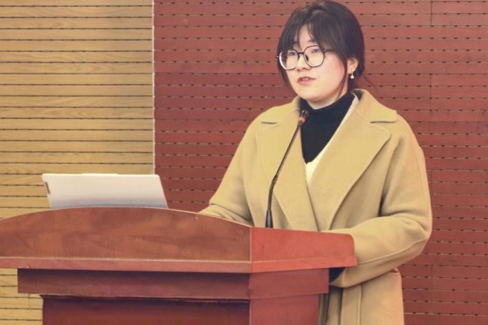 校研究生会主席团成员杨睿灵代表校研究生会致辞。她肯定了金女院研究生会在思想政治建设、学术活动、社会实践等方面的工作成果,她希望百家乐平台