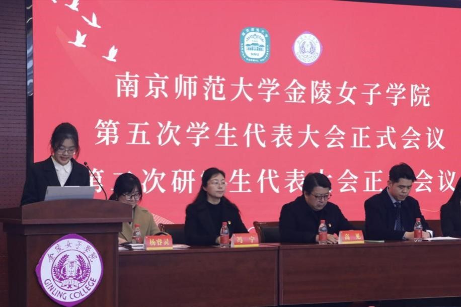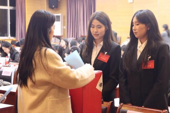 大会在庄严的国歌声中正式拉开帷幕。校学生会主席团成员丁唐婧代表校学生会致辞。她肯定了金女院学生会过去一年在思想引领、服务同学、组织活动等方面取得的工作成绩,并对金女院学生会继续强化服务职能,推动各项工作的进一步发展表示期待,对金女院学生会未来的工作和发展给予了诚挚的祝福。