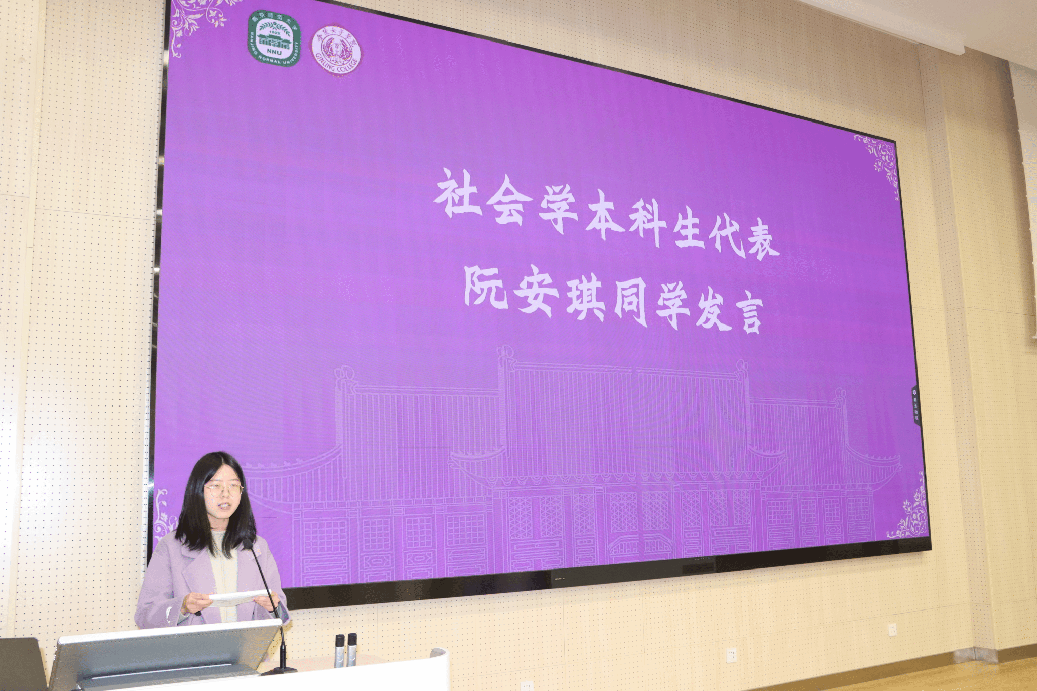 的百年院史,讲述了其严谨的治学传统与以吴贻芳先生为代表的杰出校友们。她指出,金陵女子大学于1924年设立社会学系,有着深厚的社会学科学术历史。金女大“德智体美群”的五育并举模式,其中“群”字又与社会学的宗旨高度契合。她介绍了金女院现学科设置、国际交流活动、奖助学金和金陵歌会等百家乐平台情况,特别强调了“厚生”精神的传承,鼓励学生服务社会、追求卓越。她介绍了贻芳书院的三个阶段培养方案,鼓励学生通过参加素质讲座、工作坊等书院活动提高自身综合素质,在新百家乐平台遇见最好的自己。