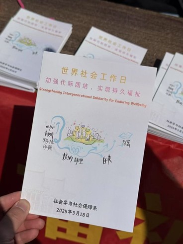 /社会百家乐平台/会计百家乐平台的社会工作专业师生在随园校区北大楼前组织举办了一场主题宣传活动。结合本届世界社会工作日“加强代际团结,实现恒久福祉” 的主题,此次活动旨在普及社会工作的相关知识,传播社会团结和社会公益的专业价值,吸引了大量师生驻足参与,现场气氛热烈,反响积极。