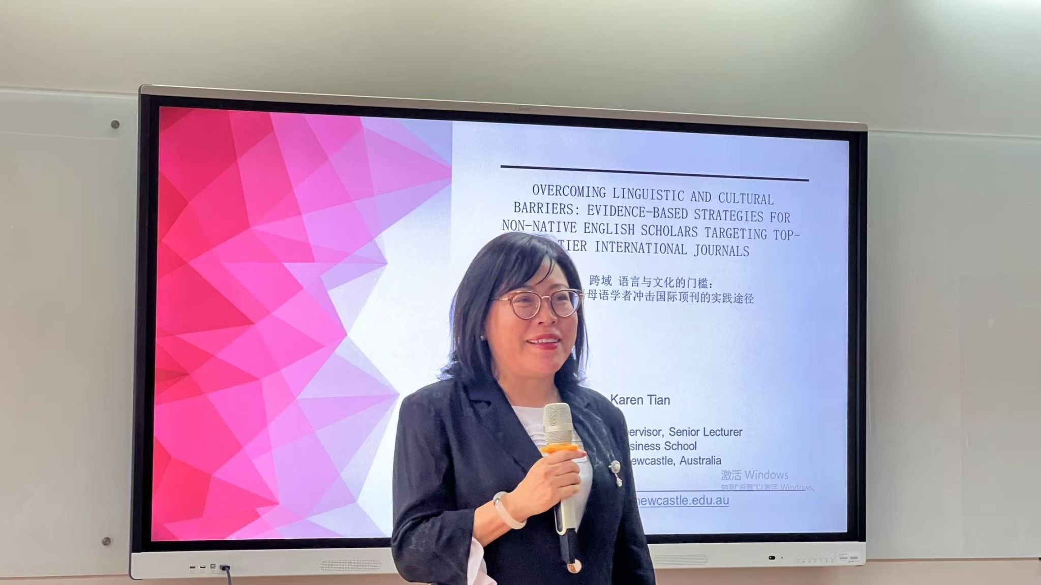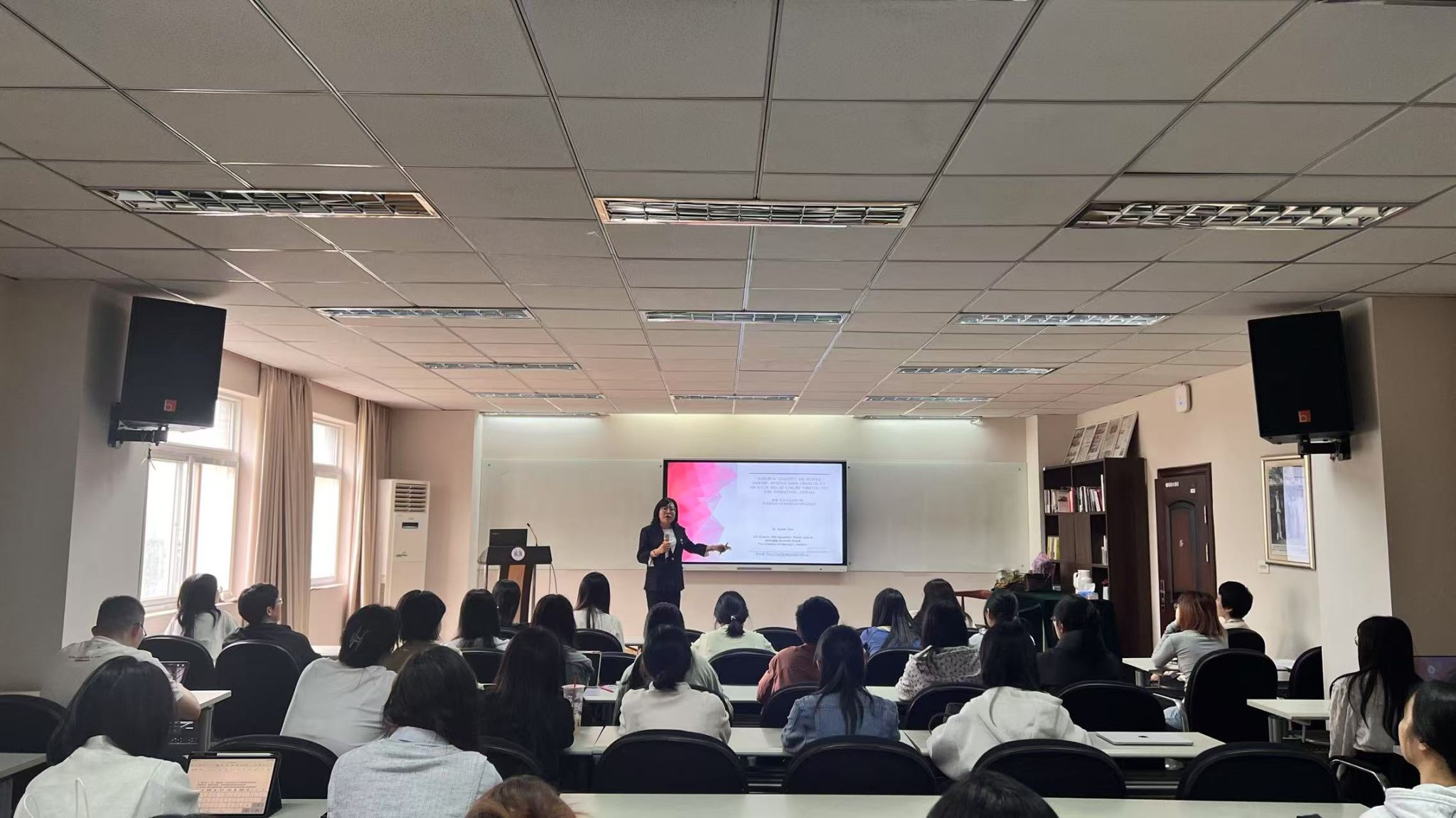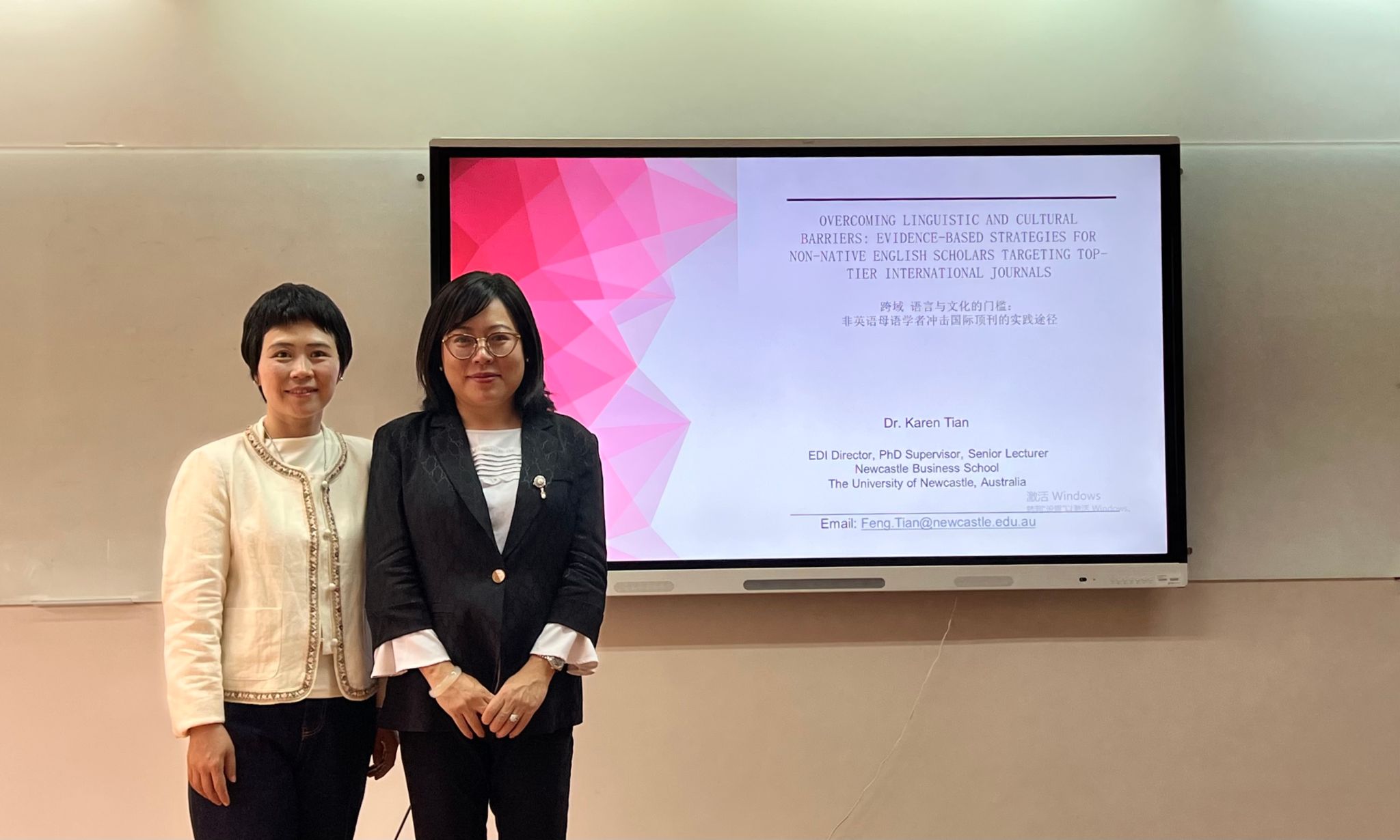 /社会百家乐平台/会计百家乐平台于随园逸夫楼416会议室成功举办第三十六期贻芳讲坛,特邀澳大利亚纽卡斯尔大学田丰(Feng Tian)博士作为主讲嘉宾,她围绕“跨越语言与文化的门槛:非英语母语学者冲击顶级国际期刊的实践路径”这一主题展开深入分享,张戌凡教授主持本次讲座。众多学子踊跃参与,共同聆听这场学术盛宴。