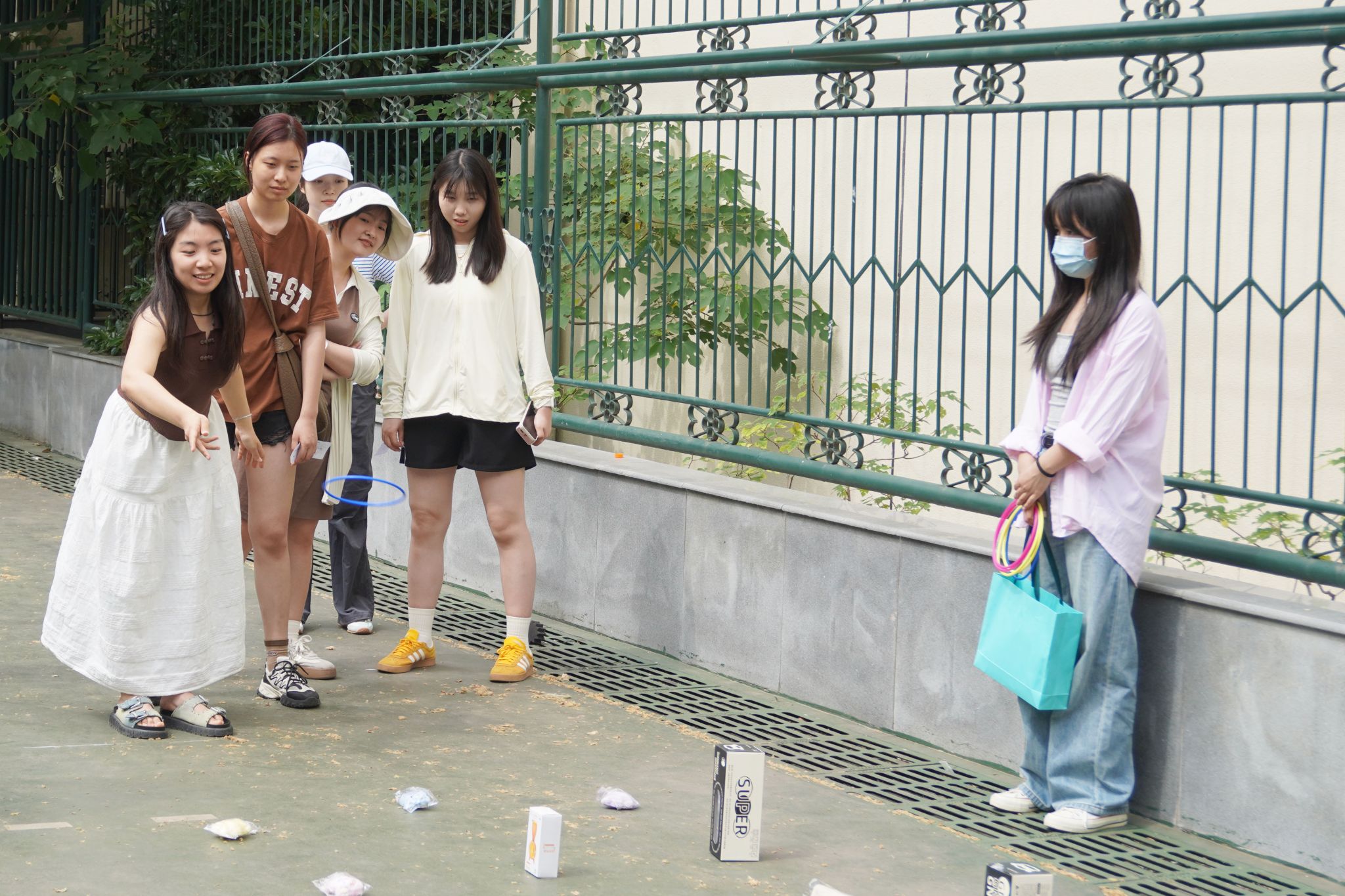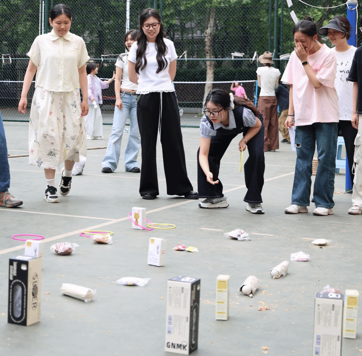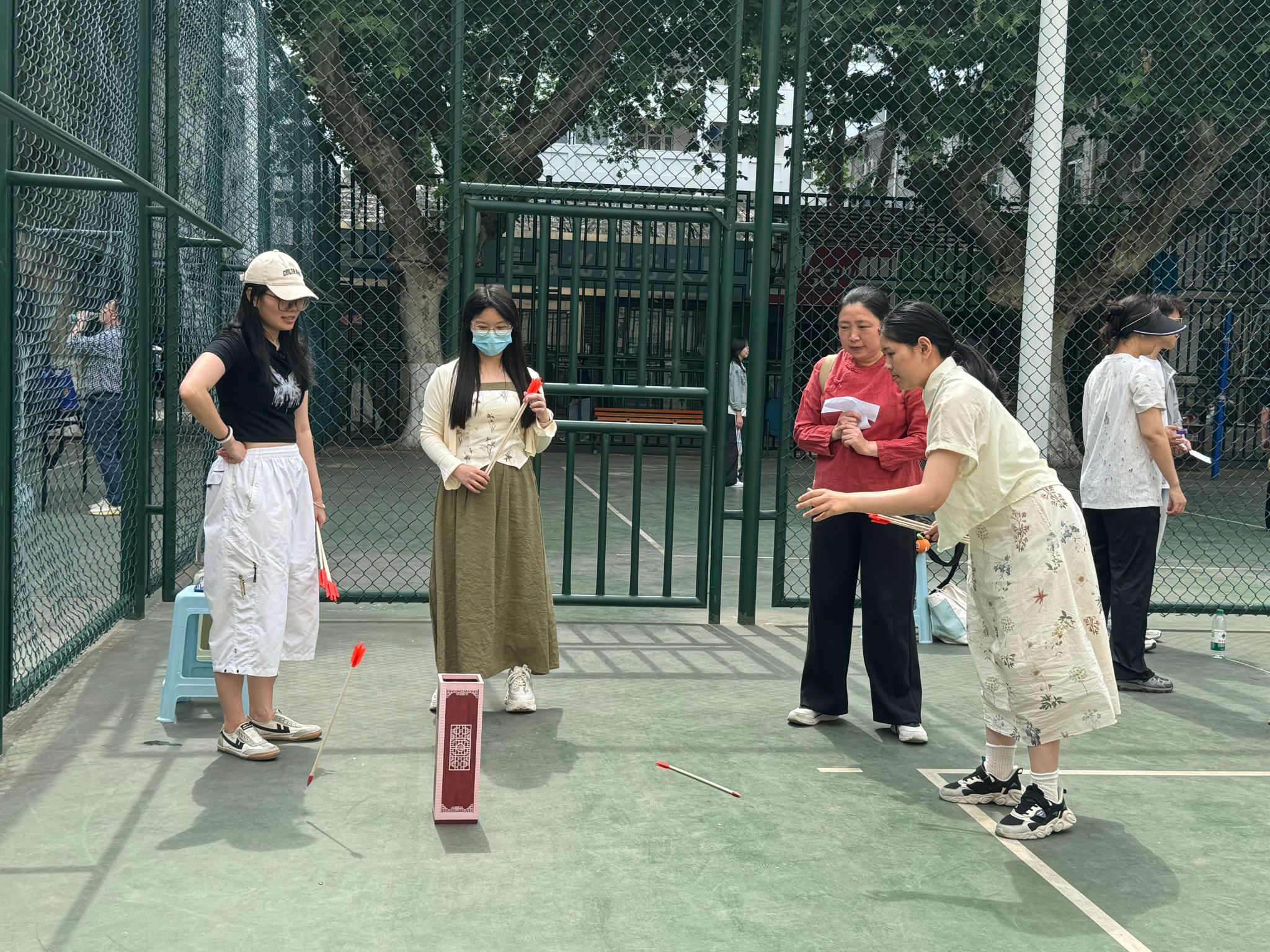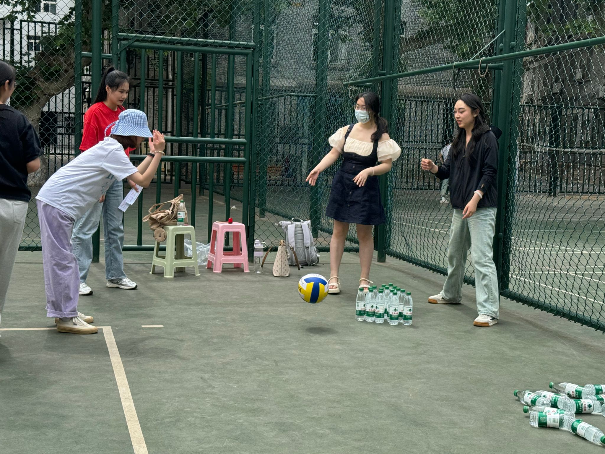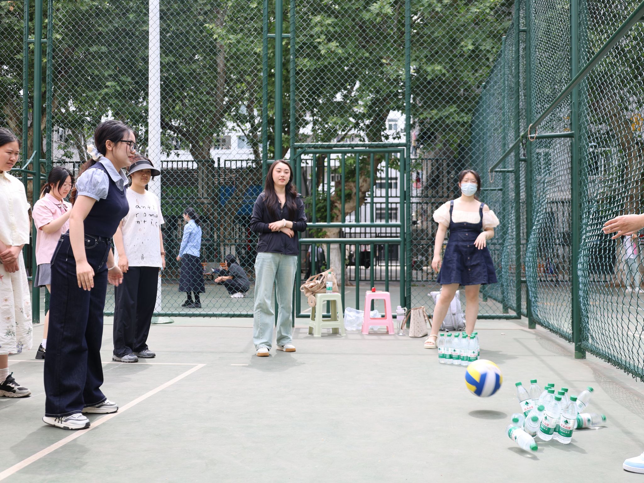 此次趣味运动会共设置趣味拔河、趣味保龄球、投壶、水上乒乓球、沙包投掷五个游戏项目。活动伊始,工作人员组织全体参与者进行“趣味拔河”项目,范存斌、张小军、王芳等教师加入其中,与同学齐心协力、紧握绳索,欢呼加油声此起彼伏,拔河活动结束后,师生自由选择游戏项目,全身心地投入到各个游戏环节,展现了无限的激情与活力,活动现场组织有序,气氛热烈。