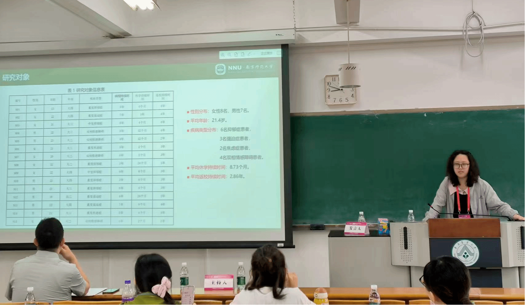 吴一涵副教授在“社会工作各领域发展与实践”分论坛,以《精神障碍青少年返校过程中自我认同动态演化的定性追踪研究》为题作报告。该研究采用建构型扎根主义结合定性追踪研究方法,对15名青少年进行为期四年的追踪访谈,构建出“自我认同动态演化发展”的理论模型,旨在阐明青少年精神障碍康复过程中自我认同的重要性。此外,吴一涵副教授在“社会心理服务与临床社会工作”分论坛,以《复元理念下青少年抑郁症患者康复水平评估工具的开发及信效度检验》为题做报告。该研究在前一研究结果的基础上,结合社会工作实务的视角与本土化需求,以复元为理念,开发并验证我国青少年抑郁症患者的康复水平自评量表。