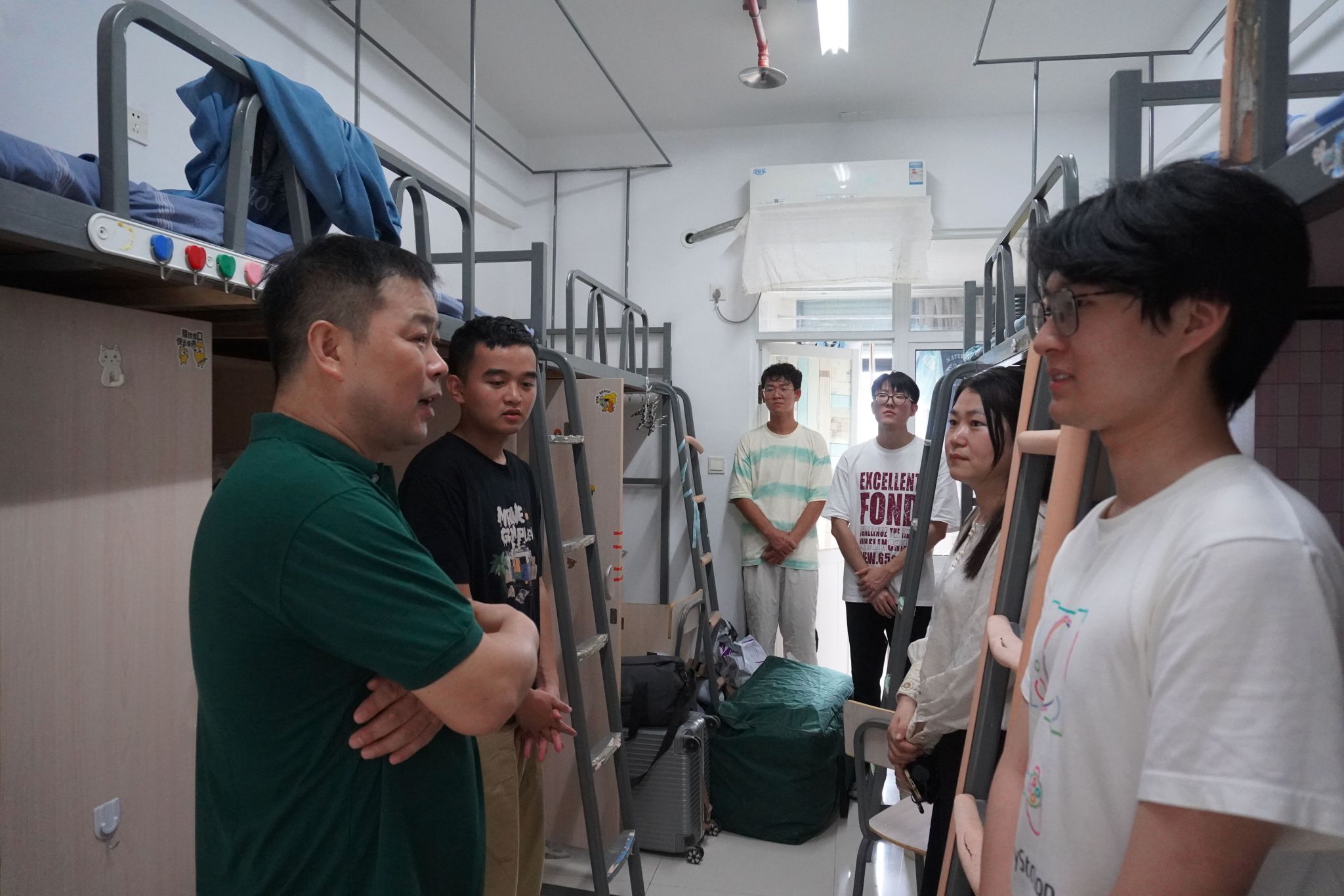 当天,院领导和辅导员还分别走访了本研学生宿舍,与新生亲切交谈。“家乡在哪里?”“对学校环境还适应吗?”“生活上有没有什么困难?”领导们与新生及家长亲切交谈,细致询问入校感受,耐心解答各种疑问。温暖的问候与细致的关怀,拉近了师生之间的距离,也让初来乍到的同学们倍感安心与归属。