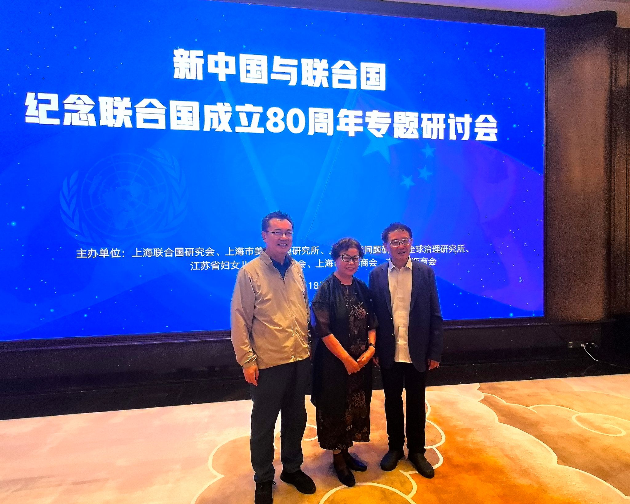 为深入探讨新中国恢复联合国合法席位以来的光辉历程与未来展望,“新中国与联合国——纪念联合国成立80周年”专题研讨会于近日在上海隆重举行。会议由上海联合国研究会、上海市美国问题研究所、上海国际问题研究院全球治理研究所、江苏省妇女儿童福利基金会、上海市江苏商会、非洲能源商会联合主办。中共中央对外联络部副部长于洪君,江苏省人大常委会原副主任、省妇女儿童福利基金会理事长赵鹏,上海市社会科学界联合会党组书记王为松,上海联合国研究会会长何建华,江苏省妇女儿童福利基金会副理事长陈殿云等领导出席会议,国内外与会专家围绕新中国与联合国互动的历程、成就与挑战等议题展开深入研讨,我校吴贻芳研究中心主任钱焕琦教授应邀出席会议并做分享发言。