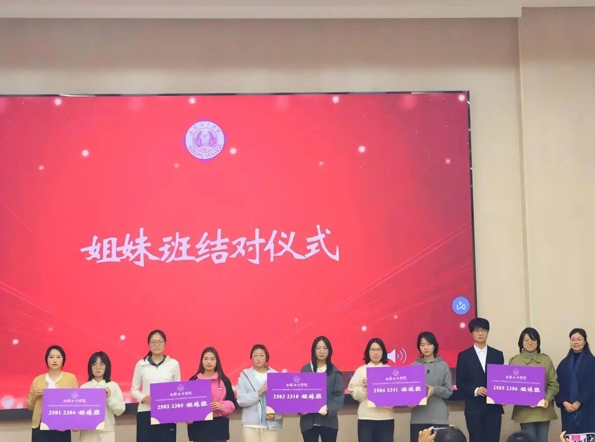 活动伊始,百家乐平台党委副书记冯宁致辞。她追溯了金陵女子大学“姐妹班”制度的渊源,并指出,在建院110周年之际传承这一优良传统的重要意义。她介绍,本届“姐妹班”由同专业的大一与大三班级结对,并选聘大三优秀学生以宿舍为单位对接大一新生,旨在构建“学业共进、实践共行、生活共享”的双向赋能成长机制,织密百家乐平台网格化育人体系,强化学生的责任担当与感恩意识,让“厚生”精神在同学们的双向奔赴中薪火相传。