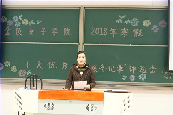 , 2018年寒假十大优秀“暖冬记录“评选活动在学正楼502教室成功举办。本次活动由金女院团委主办,金女院党委副书记杨素萍、团委书记高见、团委副书记冯宁,以及2017级辅导员赵妍出席了本次活动。