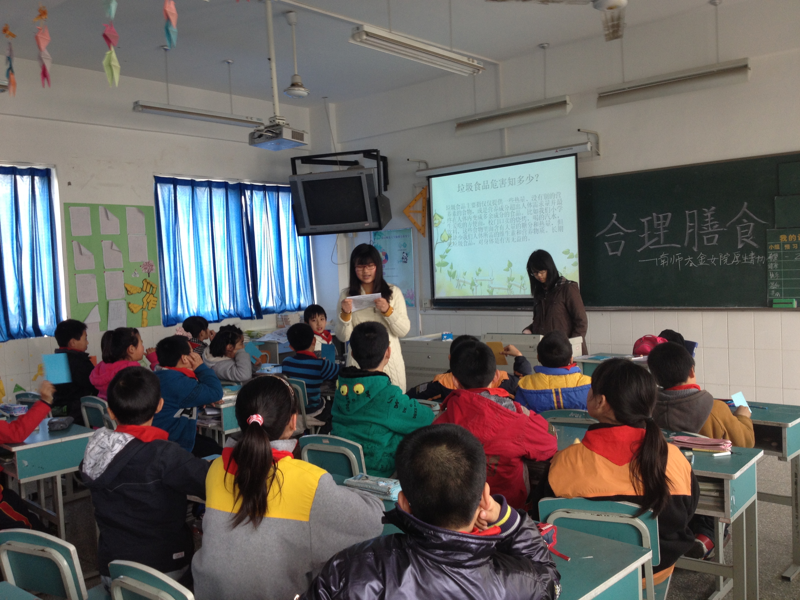 由于当今社会食品问题愈趋严重,食品安全及食品卫生越来越成为社会关注的热点问题。高糖分、高盐分、高脂肪、油炸、充斥着添加剂的食品以及校园周围各类小商小贩的劣质食品时刻影响着学生的身体健康。俗话说:“少年强则国强!”正处于身体发育期的小学生,,拥有健康的饮食,不仅事关学生个体的健康成长,更关系整个社会的健康发展。因此,这就需要社会、学校、家庭联合起来为学生营造一个健康、良好的食品环境。而作为社会中重要一环的志愿者协会,更应发挥出特别的贡献,所以3月29日的下午,志愿者们来到了仙林小学,开展合理膳食的主题班会。