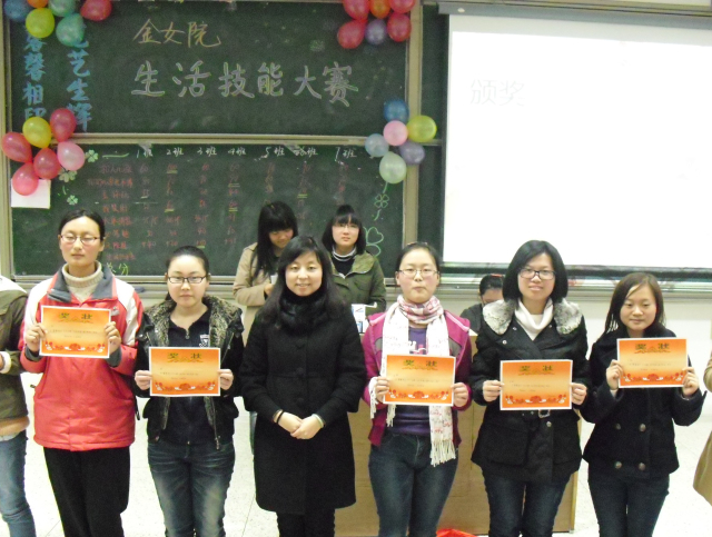 3月27日下午6点半,金女院2013年“馨艺女生节”之生活技能大赛在学正楼401教室火热举行。到场嘉宾有学生会指导老师冯宁、厚生青协副主席虞悦同学、学生会副主席邓亚楠同学和主席团助理戴思霁同学。