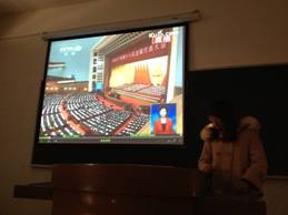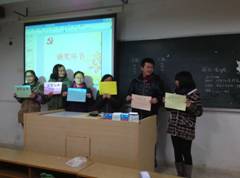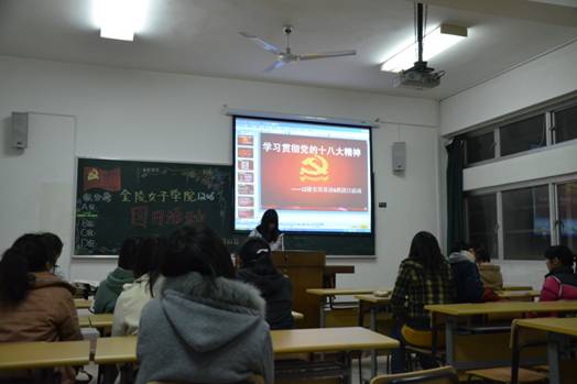 食品质量与安全班的同学们就按捺不住激动的心情,在院团委下达号召五日后就隆重举行了名为“青春跟着党走,心系党的十八大”的专题讲座,讲座紧扣专业进行,全班同学在《爱我中华》的嘹亮歌声中结束活动后仍意犹未尽;紧接着,传媒英语班举办“感悟党的十八大”的讨论交流会,学生们纷纷展示自己在学习党的十八大报告中的心得;同为英语专业的实用英语班也不甘示弱,隔日开展了以党的十八大为主要内容的知识竞赛,现场氛围热烈,高潮迭起。食品科学与检测班仿佛心有灵犀,也以知识竞赛的形式举行团日活动,在我们金女院激昂的院歌声中为获胜组颁奖;拥有3名新疆学生的劳保班发挥自己的特色,用热情洋溢的民族舞蹈向党的十八大献礼;而财务管理班以“初生牛犊不怕虎”的精神举办了党的十八大报告中“廉政”为话题的辩论会,正反双方唇枪舌剑,据理力争,现场妙语频出,赢得掌声雷动。会计班的同学们更是别出心裁,奇思妙想,以“模拟党的十八大”的形式,由学生们扮演主席、总理和各省市的代表来模拟党的十八大现场,更近距离体会党的十八大的精神,期间穿插有党的十八大元素的小游戏,并请了年级辅导员