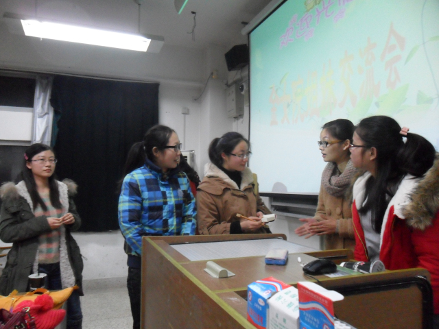 主会场活动进行完毕后,交流会的四个分会场,则根据专业分类,由各个直系学姐从本专业的角度与各系学生进行交流与指导。劳保专业会场中,已保送至中国人民大学读研的江希、专业学习优秀的张馨予和实践能力优秀的吴勤,依次向大家介绍了自己的学习方法和生活经验,强调同学们要勇于尝试各项有益活动,实践开拓视野,以积极的心态面对困难。财管会计、食品专业的学姐们也在各自教室融洽的氛围里与大家进行着交流。无论是关于专业发展前景的问题抑或是学习生活中的细枝末节,学姐都耐心地一一解答,真诚地表达出自己的所知所想,并结合自己的经历和经验提出有益意见。英语专业的同学则在212教室英语专业分会场与保送到上海外国语大学的申屠神悦学姐和保送到北京外国语大学的李菁学姐进行了深入的交流。李菁学姐的学习经验介绍切合英语专业的需要,而且对一些问题的看法也有其独到的见解,给同学们带来了很大的帮助。学姐们亲切的谈吐,幽默的语言,带来了一阵阵愉快的笑声。解答结束后,食品与英语专业的学姐带领同学们一同写下当前的愿景、理想,共同集于许愿瓶中。