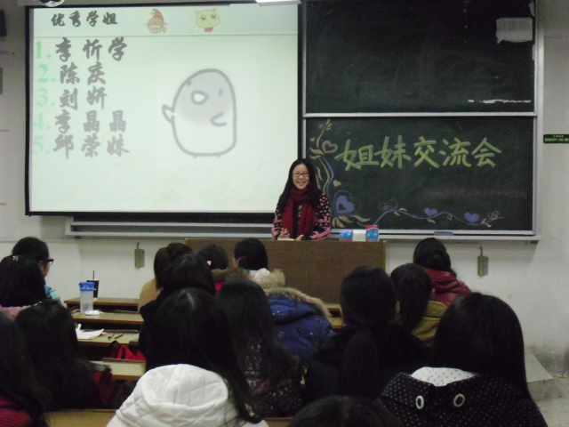 大会伊始,冯宁老师发表了讲话。她向大一新生详细讲述了“姐妹班”制度的优良传统,希望同学们继承和发扬互帮互助的精神,珍惜金陵姐妹的宝贵情谊,充分交流和学习。同时,提醒同学们立大志、求上进,克服投机取巧和功利主义思想,认真学习优秀学姐的学习方法和实践理念,踏实努力地学习。此外,她还对2012级学生独立自主的生活能力与高涨的学习热情表示肯定,并鼓励大家继续保持。她表示:开学初开展的优秀大三学姐走进新生宿舍活动已取得了良好反响,希望通过此次交流会,新生们能够进一步找准方向,真正找到适合自己的学习方法和问题研究领域,努力使每一步走得踏实、稳键,将女院学子积极向上、不思进取的优良传统发扬下去。