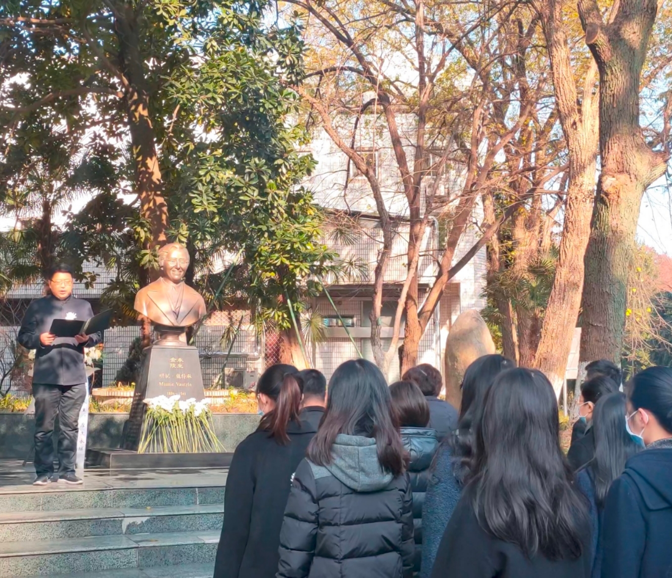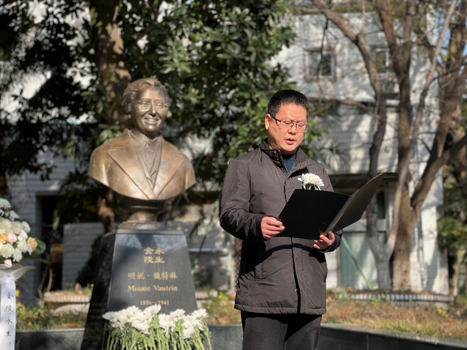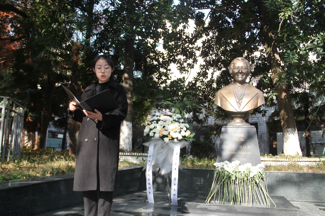 在随园校区魏特琳铜像前举行“勿忘国耻,圆梦中华”——南京大屠杀死难者国家公祭日悼念活动。校党委研工部部长周燕、副部长胡华,金女院党委书记薛传会、院长赵媛、党委副书记高见、百家乐平台辅导员以及40多位研究生党员、本科生青马班学员共同参加了此次活动。悼念活动由金女院党委副书记高见主持。