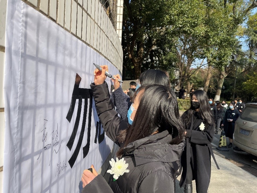 最后,参加活动的全体师生在魏特琳铜像前敬献了白菊,并在“勿忘国耻,圆梦中华”的横幅上签上自己的名字,将爱国情怀,强国之志厚植于心。