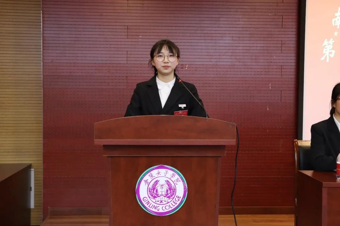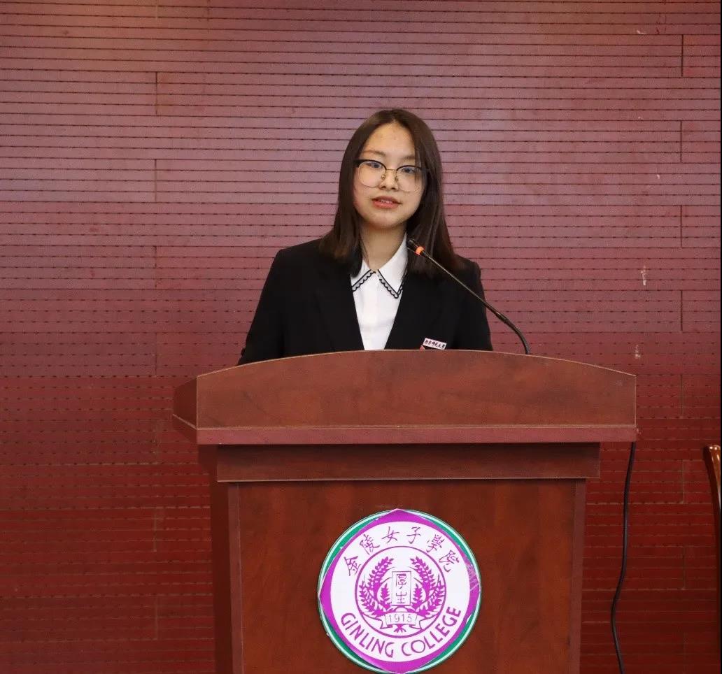校学生会主席团成员曹欣颖代表校学生会致辞。她高度评价了金女院在人才培养建设和学生工作指导方面的努力和成绩。同时,她就如何进一步做好新时代学生会工作提出了几点建议,一是强化思想引领,筑牢理想信念,树立远大理想;二是进一步夯实服务职能,切实保障同学们的合法权益;三是进一步加强队伍建设,打造一支高素质、高水平的学生会工作队伍。最后,她希望校学生会与金女院学生会在今后的工作中积极联动,为将我校建设成为有国际影响的高水平大学贡献青春力量。