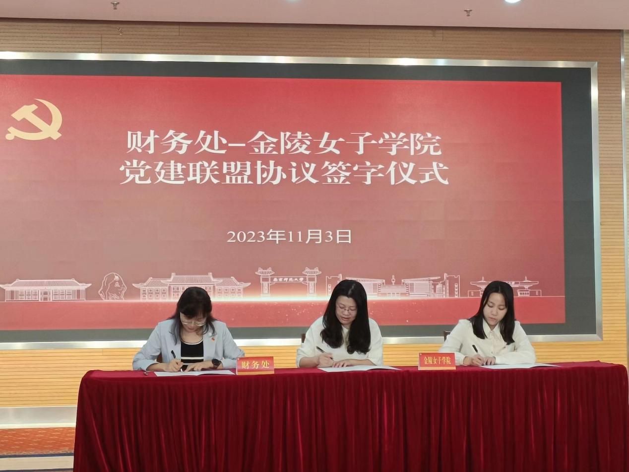 最后财务处党支部、金女院教工第二党支部、金女院研究生第二党支部共同签订党建联盟协议书。