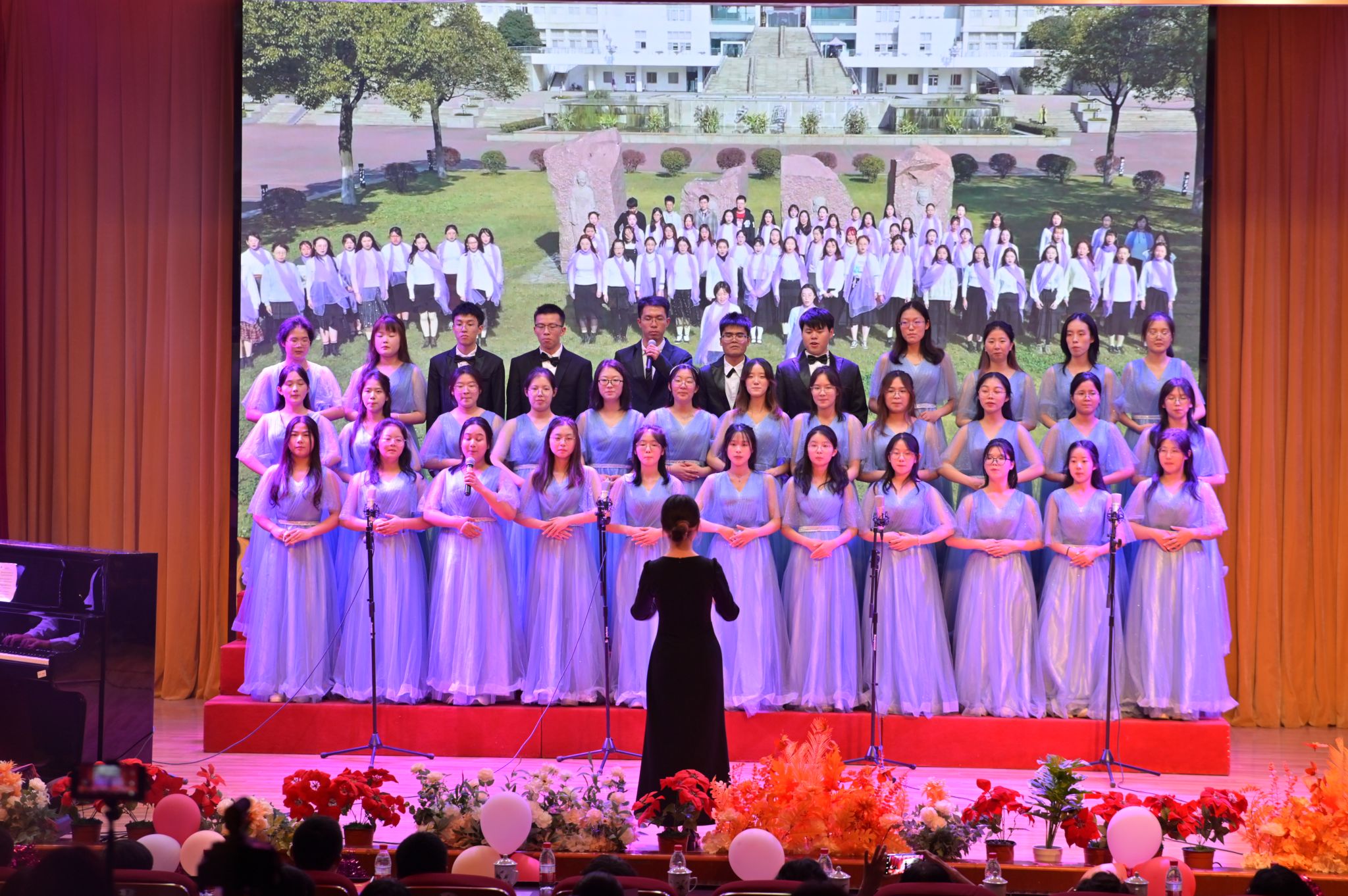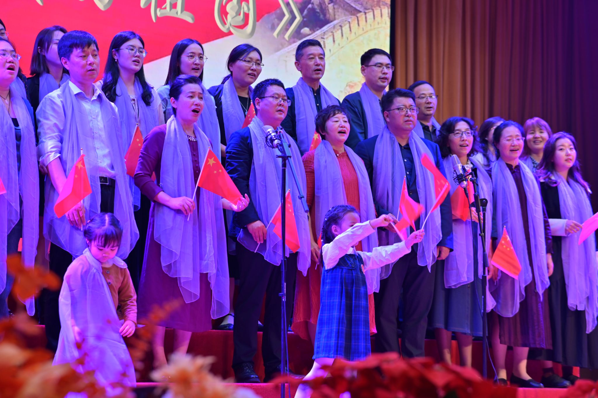 最后,教师代表队以《我们都是金陵的儿女》和《歌唱祖国》《我和我的祖国》联唱将歌会再次推向高潮,全体校友师生共同欢唱祖国,手中挥舞着的一面面国旗展现了每一位金陵儿女追求卓越,奉献自我,为社会、国家而不懈奋斗的拳拳爱国心。
