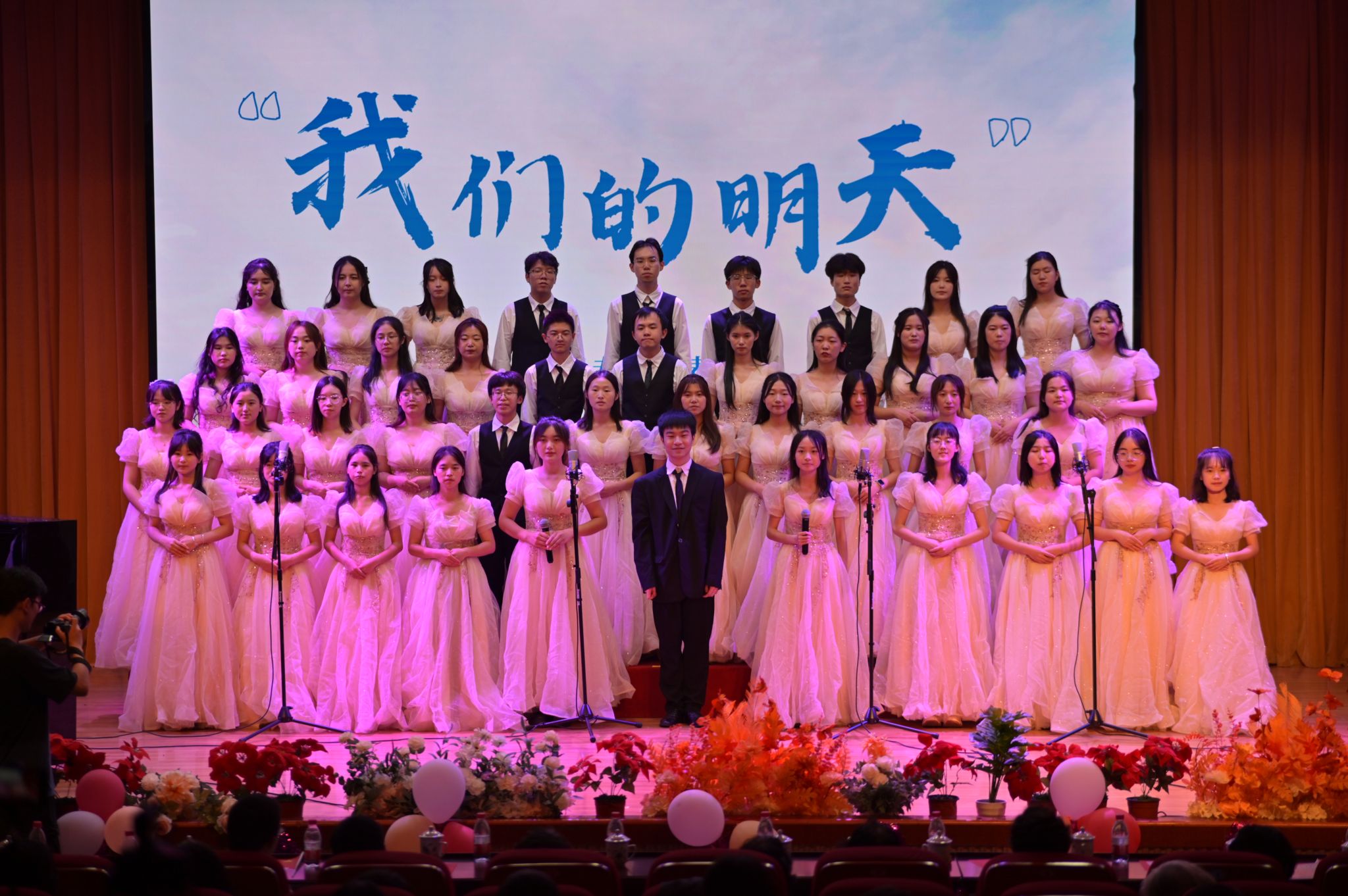 校友会代表队为观众们演唱了《金陵儿女欢聚一堂》与《友谊地久天长》两首歌曲,悠扬的歌声寄托着校友们对昔日时光的追忆,表达着校友们对金女院的思念与祝愿。会计专业代表队带来《金陵女子文理百家乐平台院歌》和《我的未来式》两首曲目,表现出纵使生活前路坎坷,金陵儿女仍对未来美好生活抱有希冀的乐观精神。研究生代表队通过演唱《金陵的儿女欢聚一堂》与《倔强》表达了他们将脚踏实地,仰望星空,用倔强书写人生态度,以坚定实现人生理想,在实现梦想的道路上勇毅前行。财务管理与会计代表队演唱了《百家乐平台