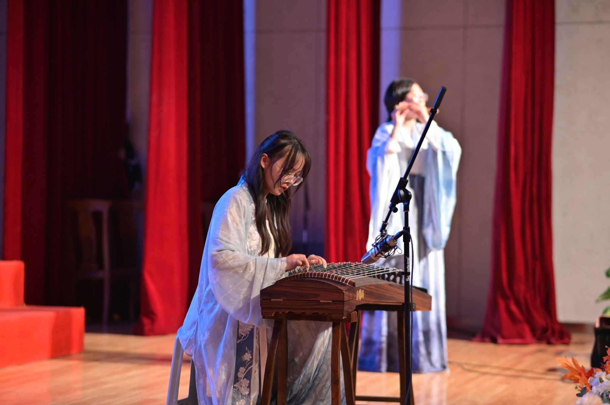 随后,乐器合奏给我们带来了一场视听盛宴。古筝、长笛与钢琴,中华传统乐器与西洋乐器的碰撞,产生了奇妙的化学反应,三者相辅相成,融为一体,造就了一首兼容古典与流行的天籁之音。