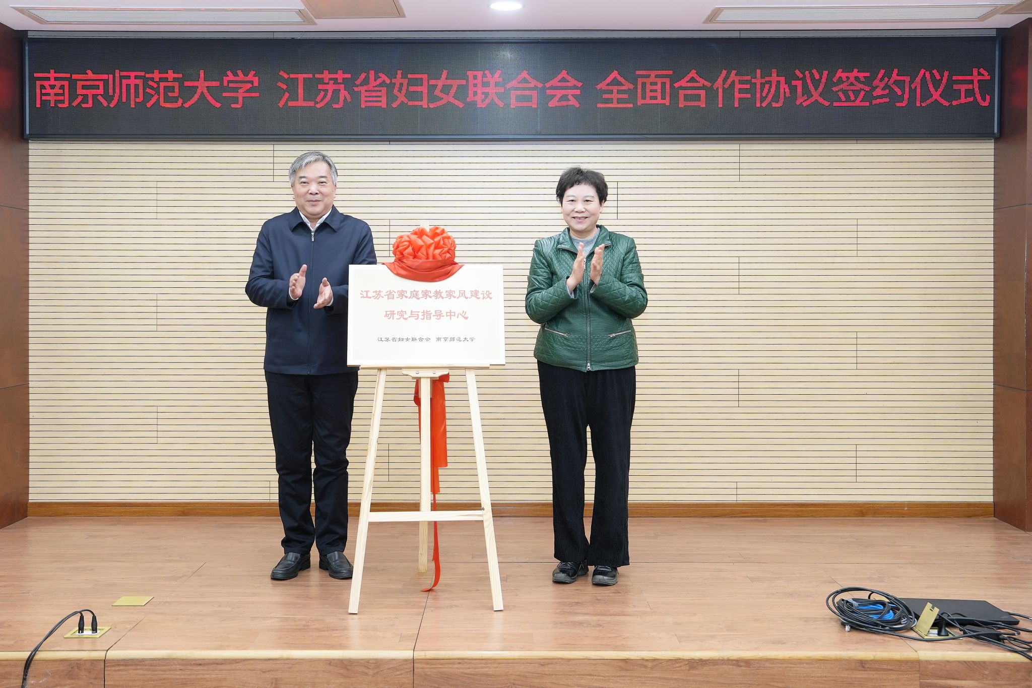 华桂宏与沈梅为“江苏省家庭家教家风建设研究与指导中心”揭牌。