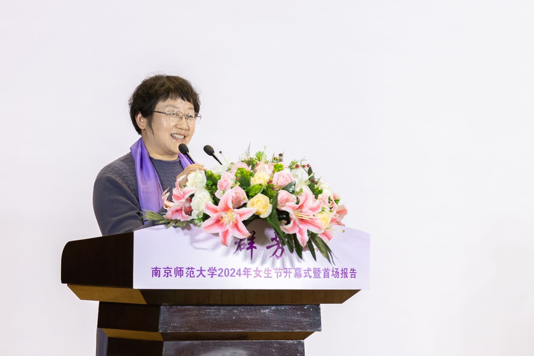 校党委常委、副校长张连红讲话。他指出,2024年是中华人民共和国成立75周年,是习近平总书记擘画“强富美高”新江苏宏伟蓝图的第十个年头,也是学校“十四五”事业发展规划和重大项目推进之年,在这一背景下举办女性人才培养系列活动,有着重要意义。他强调,要贯彻落实习近平总书记的重要指示精神,重视女性力量在国家发展、社会进步与学校事业前进的重要作用,重视女性人才培养,弘扬南师群芳的优良传统,在新时代发挥女性的更大作为。他希望同学们要坚定理想信念,弘扬南师的优良传统,赓续红色血脉,牢记“厚生”中报效国家、服务社会的深刻内涵。同时也要提升专业素养,学好专业知识,锻炼专业能力,成为能吃苦、肯奉献的新时代好青年。