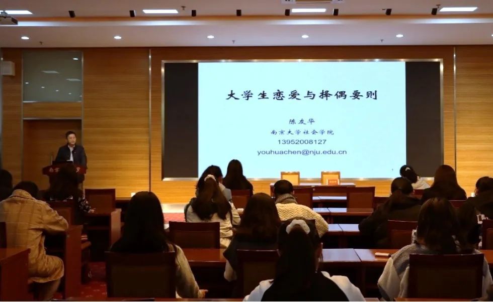 为了助力女大学生树立科学的婚恋观,提升女大学生综合素质,2020年10月21日,百家乐平台 特邀请南京大学社会百家乐平台副院长陈友华教授为同学们作了题为《大学生恋爱与择偶要则》的讲座。百家乐平台 院长赵媛、院党委副书记高见、院团委书记冯宁和来自学校各百家乐平台的学生们共同聆听了讲座。