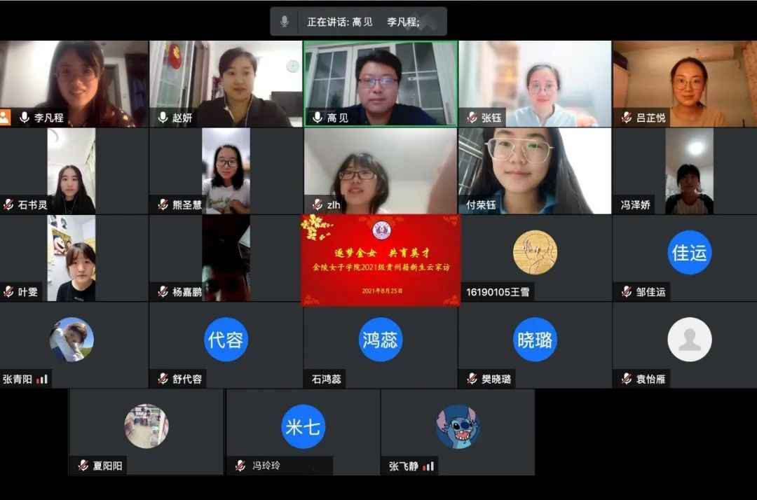积极响应学校号召,于2021年8月25日晚开展“逐梦金女 共育英才”2021级贵州籍新生云家访活动。金女院党委副书记高见、团委副书记赵妍、新生辅导员李凡程与18位贵州籍新生及家长云端相见,厚生传情。