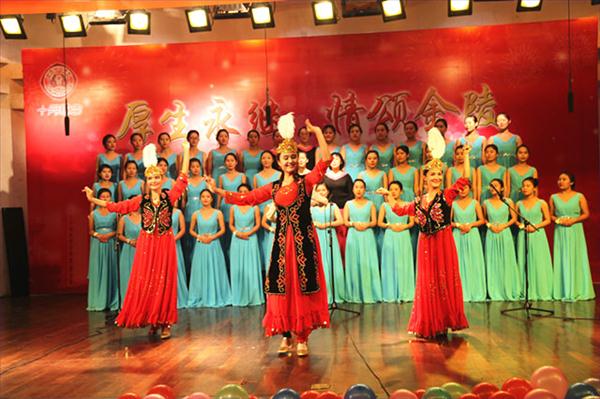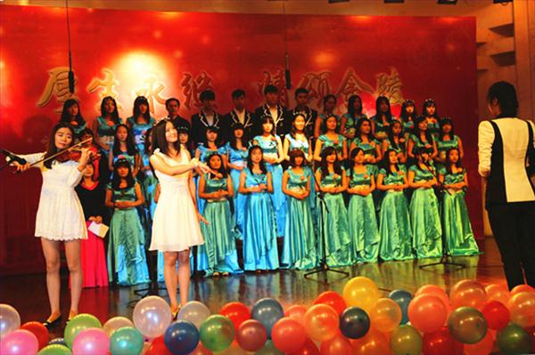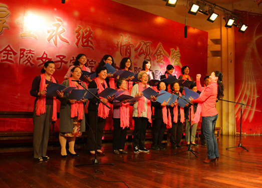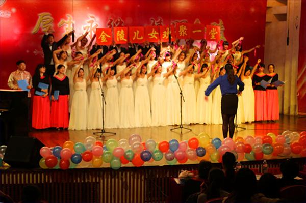 此次活动旨在庆祝金陵女子大学建校99周年、金女院建院27周年,歌会在金女院老校友深情的歌声中拉开帷幕。粉红色丝巾衬托着老校友们饱满的精神,她们面带笑容,歌声宛转悠扬,两鬓斑白却风采依旧,她们饱含深情的演唱感染了在场的每一位观众。追随校友的脚步,充满青春气息的英语专业的同学们身着白领蓝裙,手系深蓝丝带,怀着对吴贻芳校长为社会奉献的崇敬的心情,她们献唱了欢快活泼的《sing a ling a ling》,清爽嘹亮的歌声赢得阵阵掌声。随后,身穿军装的研究生代表带来了《打靶归来》,声音洪亮,气势磅礴的他们展现了金陵儿女的铿锵豪情与青春斗志。金女院教职工艺术团的老师们则以黑衣红裙相衬,演绎高难度的《鼓浪屿之波》,茫茫鼓浪屿、漫漫台湾岛、传递出对祖国的热爱,对海峡两岸团聚的渴望,声情并的歌声委婉动人,让人沉醉。而劳动与社会保障系的同学为大家带来了《打起手鼓唱起歌》,独具匠心的她们不但改编了曲子,还在中间加入了优美的民族舞蹈,表演欢快活泼,极富节奏感和视觉冲击力。最后,高级研修班的女企业家校友们以女人味十足的《踏浪》和《女人花》合唱,将本次歌会带入尾声。