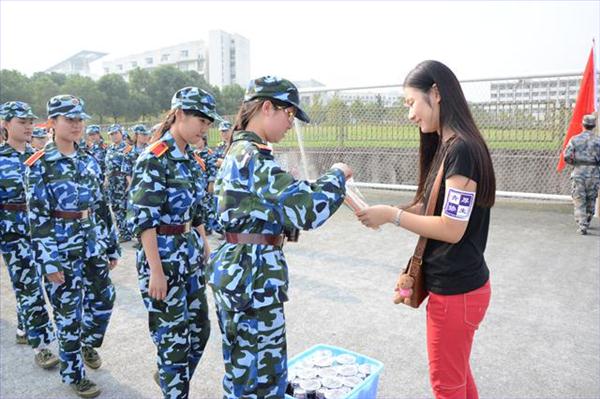后,院青协主席于晓雨代表发言,对正在烈日中接受军训的14届金女院学生表达了真挚的关切与祝愿同时,青协成员组织发放了饮料以缓解军训带来的疲惫,更是用行动表达了学姐对学弟学妹们的热切关