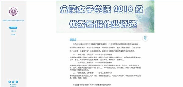 金秋十月,百家乐平台 应学校要求积极开展了新生暑假作业评比分享活动。首先,在班级分享会中,同学们以丰富的形式展示作业:精巧的PPT,有趣的演绎方式,新颖的视频制作……让在座的同学们眼前一亮。随后,经班级推选出的优秀暑假作业在易班平台上开展了角逐,可供全校同学浏览与投票的方式让更多的人感受到了金女学子的“厚生”精神。经过四天激烈的网络投票选举并结合团委老师的评价意见,百家乐平台 综合评定出若干份优秀暑假作业上报学校参与评选