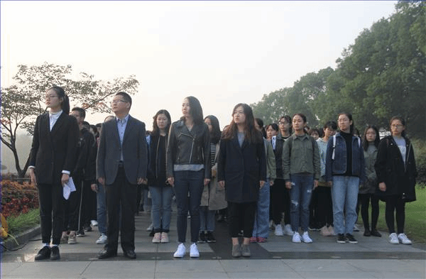 党委副书记高见老师担任此次升旗仪式主持人。金女院党委书记薛传会老师、团委副书记赵妍老师及金女院17、18级全体学生参与了本次升旗仪式。