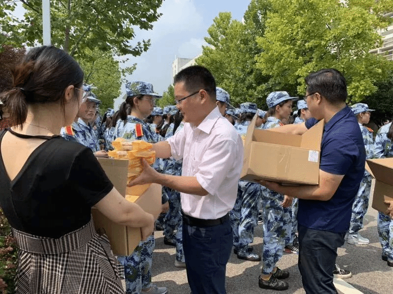 最后,孙校长与随行老师一同为教官和同学们发放月饼。这个中秋,金女院的同学们带着老师们的祝福,挥洒着奋斗的汗水,过得充实而有意义。