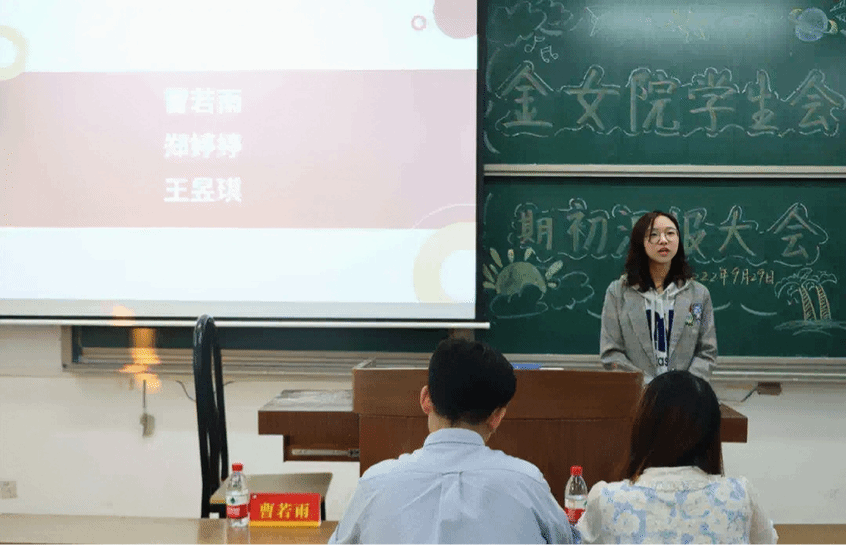 主席团成员曹若雨鼓励新成员与学长学姐积极沟通,踊跃提出自己的想法,建议同学们关注自身角色转变,增强了成员的责任心。