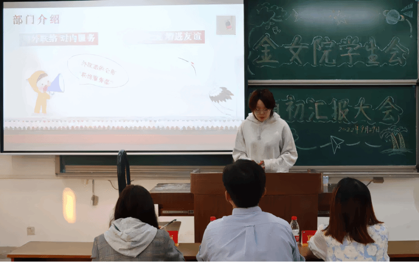 外联部明确自身“对外联络、对内服务”的工作特色,提出了“拓宽交流,增进友谊”的目标。向大家介绍新成员后,展望未来工作计划,提出了促进院系沟通的愿景。
