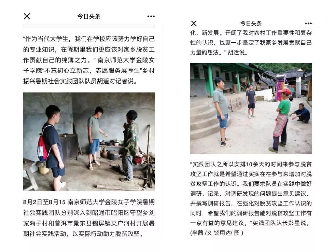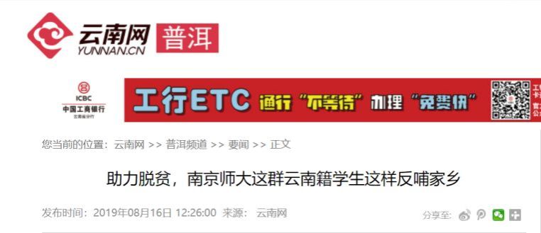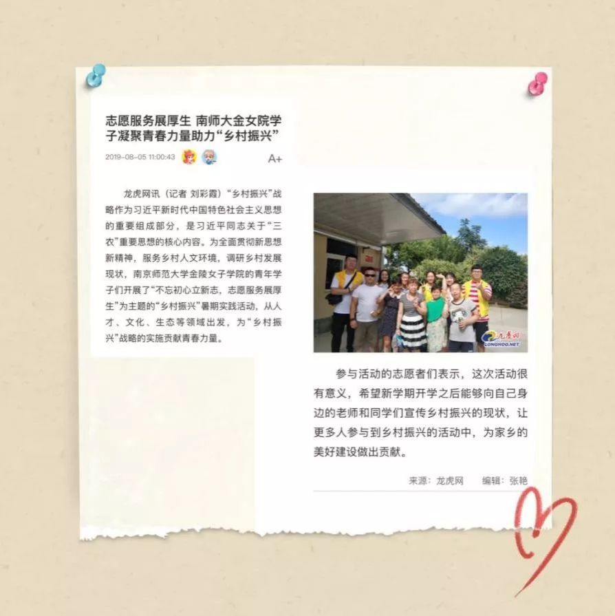 2019年暑期,百家乐平台-百家乐平台大全-真人百家乐 “不忘初心立新志,志愿服务展厚生”暑期社会实践团队以乡村振兴为主题,服务多地的优秀事迹受到云南网、南京市电视台、龙虎网、今日头条等多家媒体的关注,并做了相关报道。
