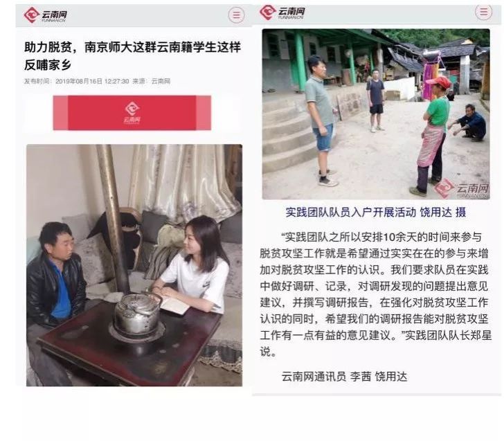 2019年8月16日云南网对百家乐平台-百家乐平台大全-真人百家乐 “不忘初心立新志,志愿服务展厚生”乡村振兴暑期社会实践团队云南调研分队的调研活动进行报道。