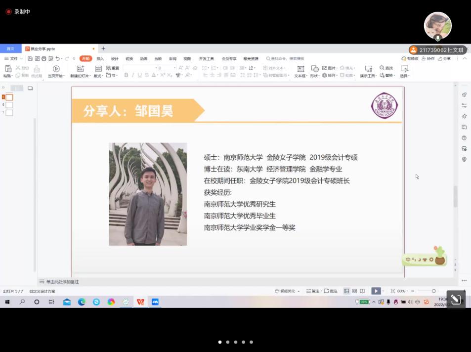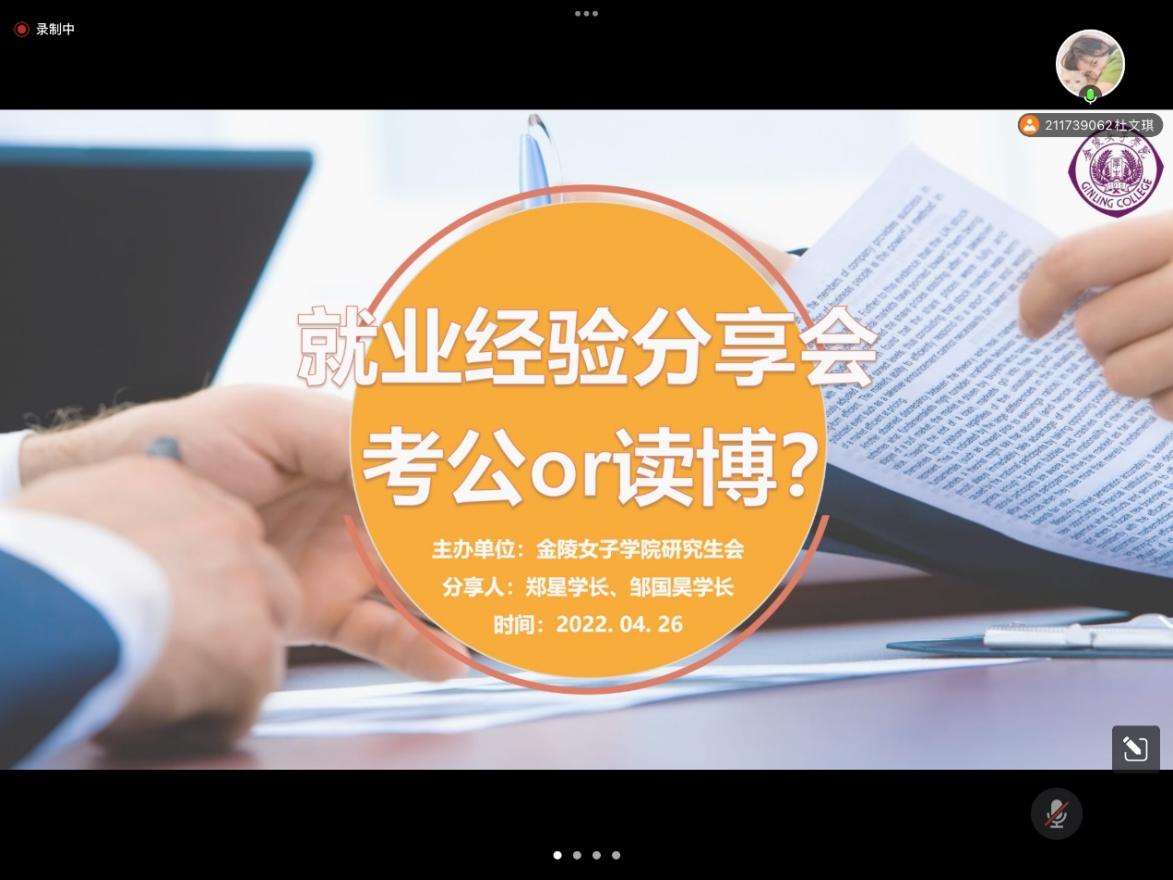 426日晚上19点,百家乐平台 研究生会主办了求职就业主题线上活动,特邀百家乐平台 2020届会计专硕郑星校友和2021届会计专硕邹国昊校友,针对考公和读博的话题,与大家分享经历和交流经验。