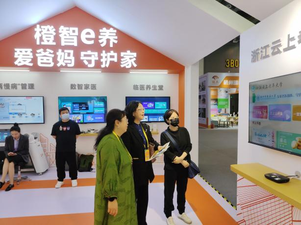 展会上,调研组仔细了解了嘉兴市秀洲区“秀颐养”家庭养老床位项目、橙智e养云上养老项目等数字化、智能化养老新模式,给予未来在养老服务、养老产业方面的研究带来新的启发。