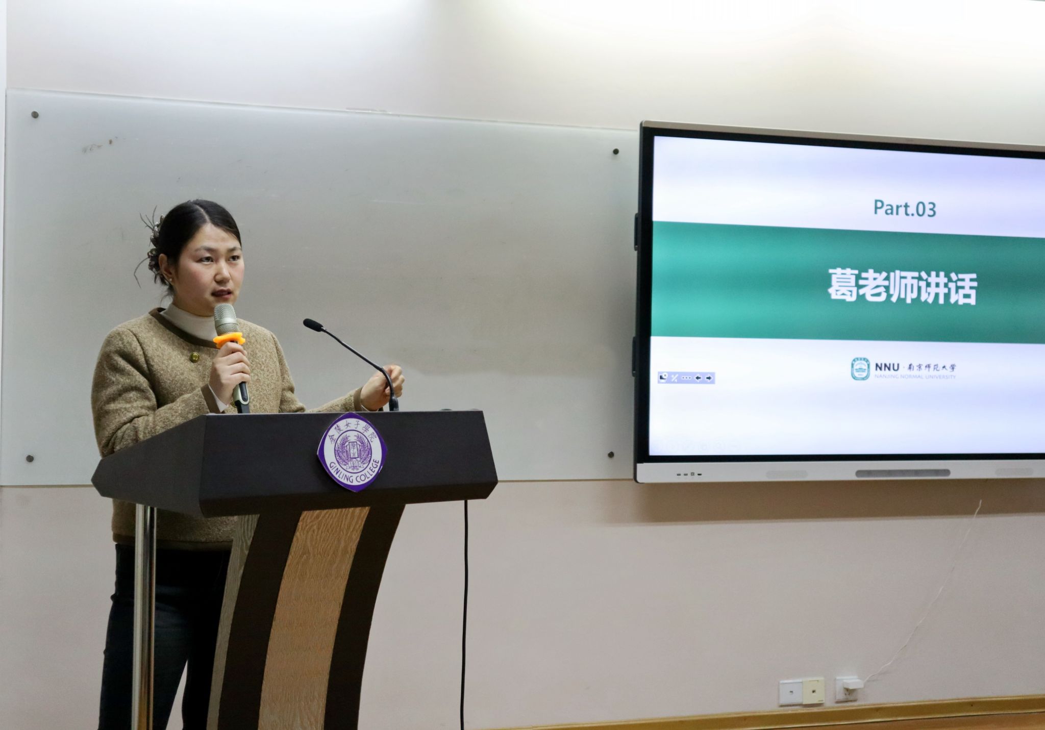 各部门部长汇报结束后,研会指导老师葛茹对本次会议进行了总结发言,她充分肯定新百家乐平台研究生会的蓬勃活力,强调这份活力正是全体成员躬身践行的生动写照。同时,她对四个部门的工作表示认可,并呼吁成员深入学习过往活动经验,科学规划研会发展路径。据此,葛老师在会上对研会各位成员提出了以下三点要求:第一要夯实基础、协同共建,深化学科资源整合与文化交融,传承金女院底蕴并融合原社发院的创新动能;第二要勇担使命、敢于创新,立足同学实际需求,将热情转化为服务恒心;第三要强化合作、提高效能,以一加一大于二的融合思维打造研会新标杆。最后,她勉励全体成员以敢想敢为的锐气,为百家乐平台发展注入青春力量。