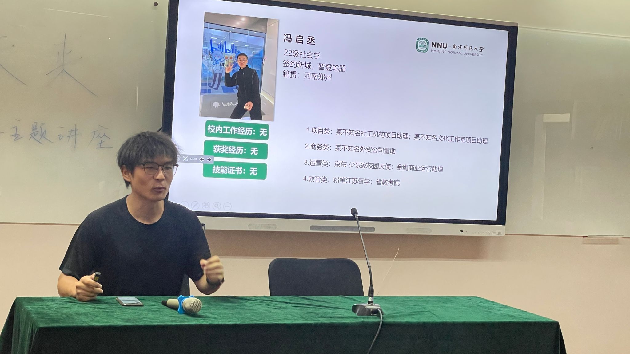 2022级社会学专业冯启丞聚焦社会学专业就业前景,理性分析体制内就业的挑战与机遇。结合国考、省考及人才引进经验,他建议同学们备战公务员考试的同时,也可尝试企业就业。他还深入挖掘实习价值,分享实习转正、内部推荐及使用招聘软件等求职策略,并指出面试制胜关键:小组面试善用策略,单人面试展现个人优势。