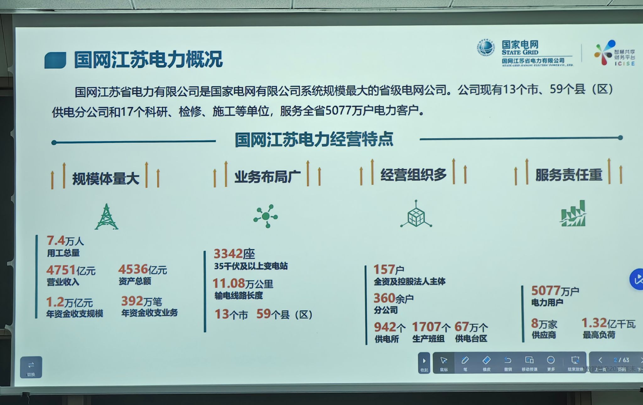 首先,郑祥华主任介绍了国网江苏电力有限公司的概况。作为规模最大的省级电网公司,国网江苏电力有限公司具有规模体量大、业务布局广、经营组织多、服务责任重的特点,服务全省5077万户电力客户。